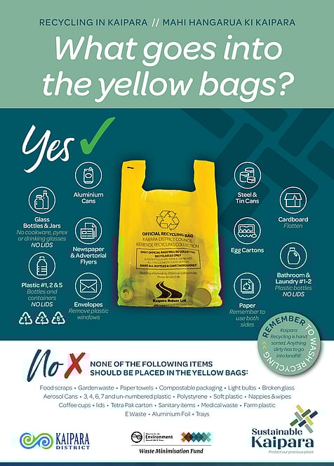 purchase an official Kaipara refuse yellow bag from one of your local retailers